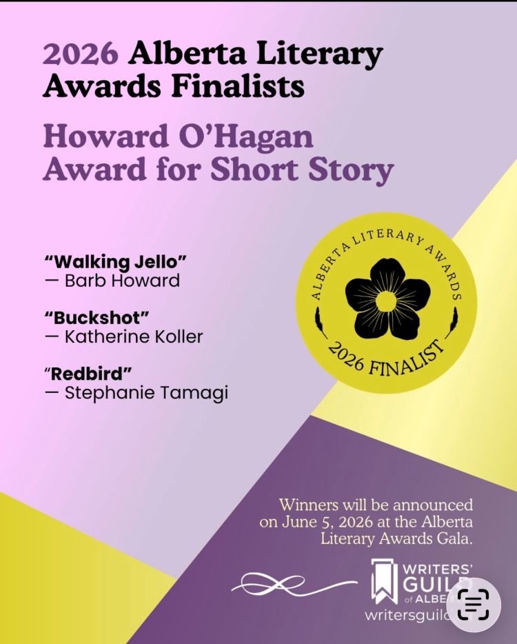 Good News! “Walking Jello” is a finalist for the Howard O’Hagan Award for Short Story. Winner to be announced at the Alberta Literary Awards on June 5, 2026.